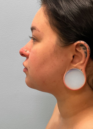 This woman in her early twenties had concerns about her chin, and despite weight loss, her cleft chin and double chin were not affected. She and Dr. Tucker discussed her many options, and she chose to proceed with precision liposuction. She looks great and has been very happy with her results. Pictures were taken before and two months afterwards.